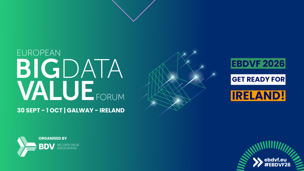 The next European Big Data Value Forum (EBDVF) will take place from 30 September – 1 October 2026 in Galway, Ireland, bringing together industry professionals, business developers, researchers and policy-makers from all over Europe and other regions of the world to advance policy actions and industrial and research activities in the areas of Data and AI. The programme will include the most important topics of the community, presented by our members, collaboration partners and representatives from European research and innovation projects.