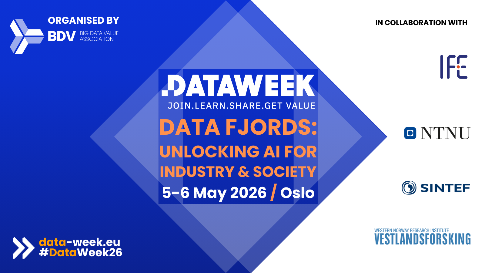 Data, Data Spaces, value creation from data and the use of methods such as AI will change many, if not all, sectors of the economy in a very short time. Existing processes will be improved, new business will emerge and regulatory, and technological frameworks are in the work and should be based on European values and technologies. But no one can achieve this change alone- no company, no research institute, no country, no region. Collaboration is the key!
